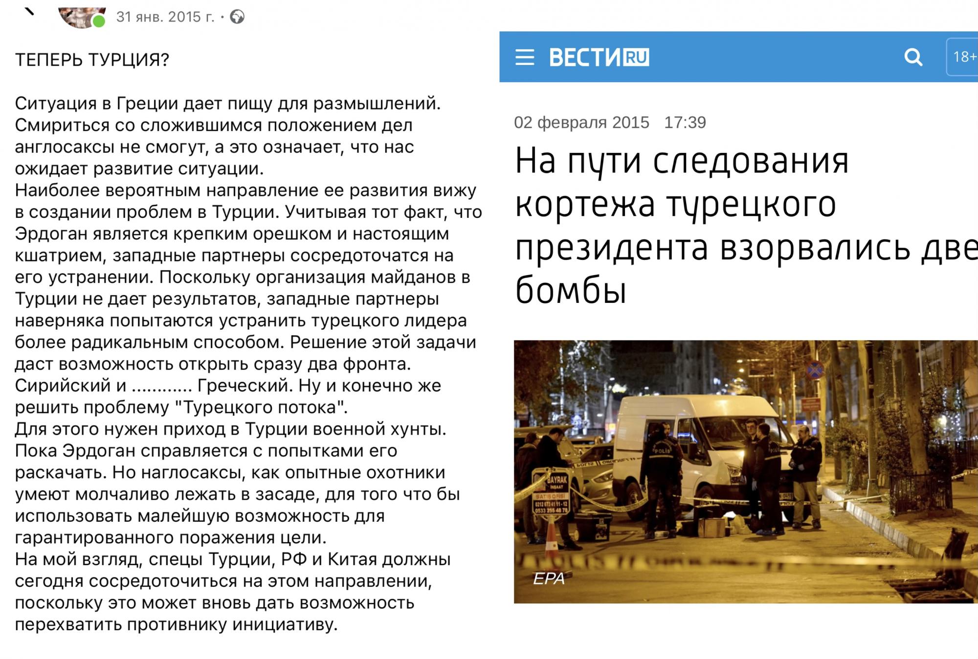 Сейчас нет времени искать, но в 2015 году за три дня до того, предсказал покушение на Эрдогана.