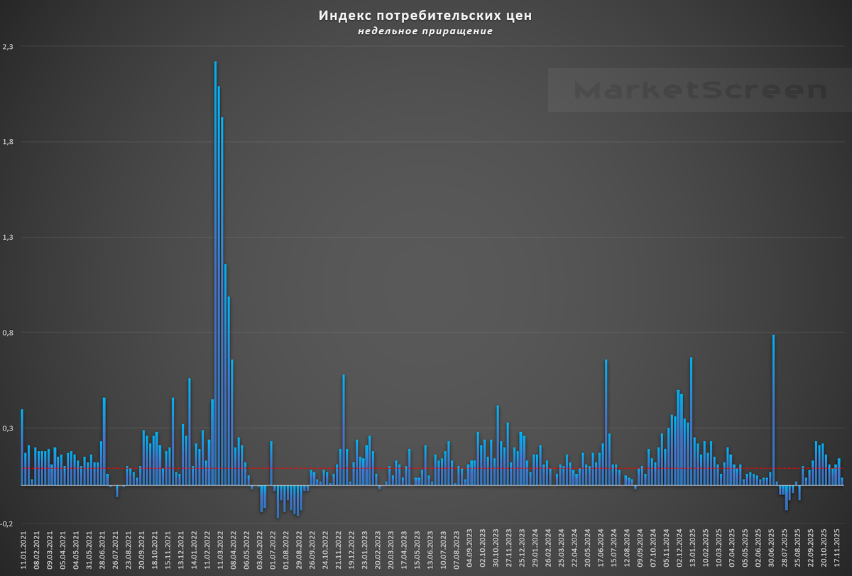 Инфляция в РФ с 25 ноября по 1 декабря составила 0,04%, годовая замедлилась до 6,6%