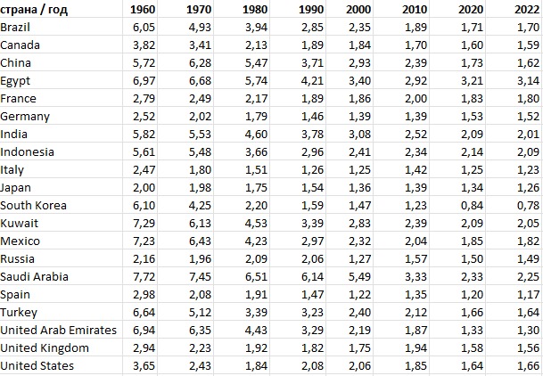 2023 г. — 1,37 (ниже Японии!)