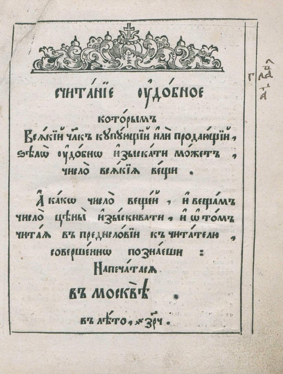 Пример использования аутентичного цифирьного алфавита в светской традиции.