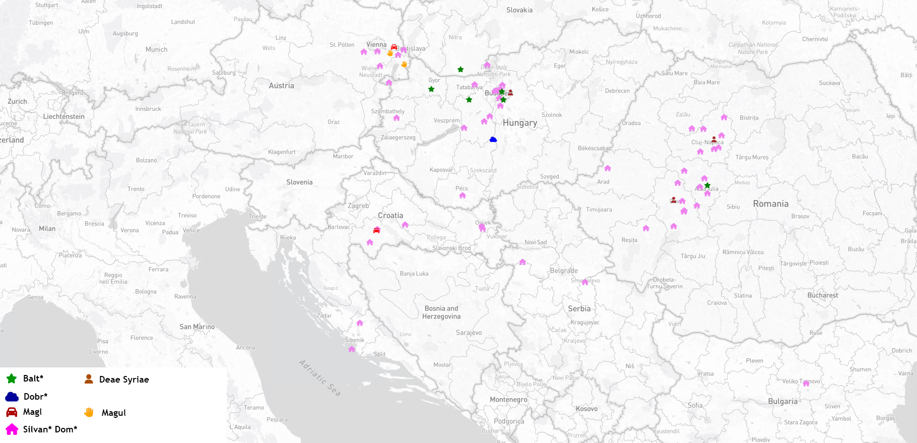 Рис. 1. Географическое распределение паннонской религиозной лексики по данным EDH