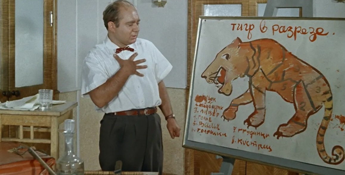 Он мог сыграть всё. Даже молча. Особенно молча. Вот смотришь на него - буфетчик с «Полосатого рейса». Сидит, понимаешь, тигр ему штаны сожрал, а он смотрит на этого полосатого урода таким взглядом, будто не тигр это, а начальник планового отдела, который опять требует отчёты в пятницу вечером. И всё ясно без слов: жизнь - это пароход, а мы все на нём - либо дрессировщики, либо мясо. Смешно до слёз. Плакать нам или смеяться?