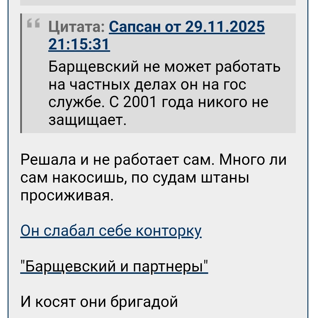 Не мошенников, а под влиянием адвокатов нанятых Долиной, - учеников Барщевского