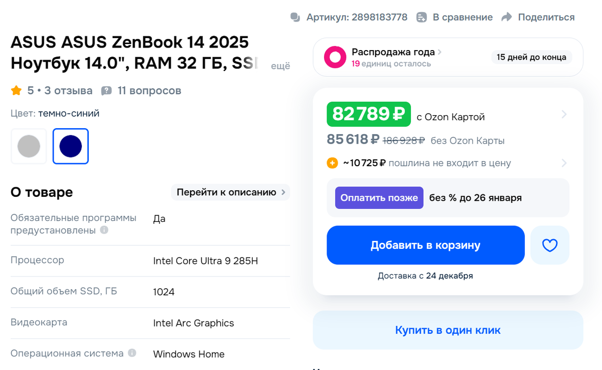 К примеру, в глаза сегодня бросился годный ноутбук на маркетплейсе Озон. Который еще недавно был за 93к ₽. А тут на десятку меньше. Да с Виндой, да с Офисом. А потом как увидел, увидел.