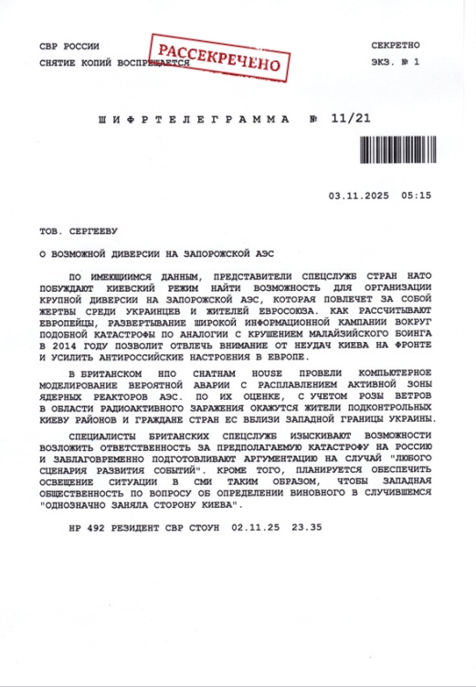 Никто такие свежие "шифротелеграммы" не рассекретит. Дурных там нет ( в СВР)!