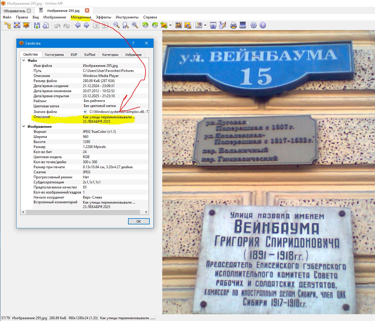 XnView MP нужен, не Classic. Настройки=>Просмотр=>блок Информации