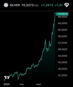 Серебро летит вверх, уже 70+, перспективы так себе - Китай на 2026й утвердил меньше экспортёров и малые квоты на отгрузку, физлица инвестируют и выкупают 15-ти килограммовые бруски, живого серебра всё меньше, а Сяма Альтман из OpenAI зарезервировал под себя ~40% мирового производства RAM, где также используется серебро (до 40мг в модуле оперативки). Про всё это расписывал ранее, теперь очевидные последствия.