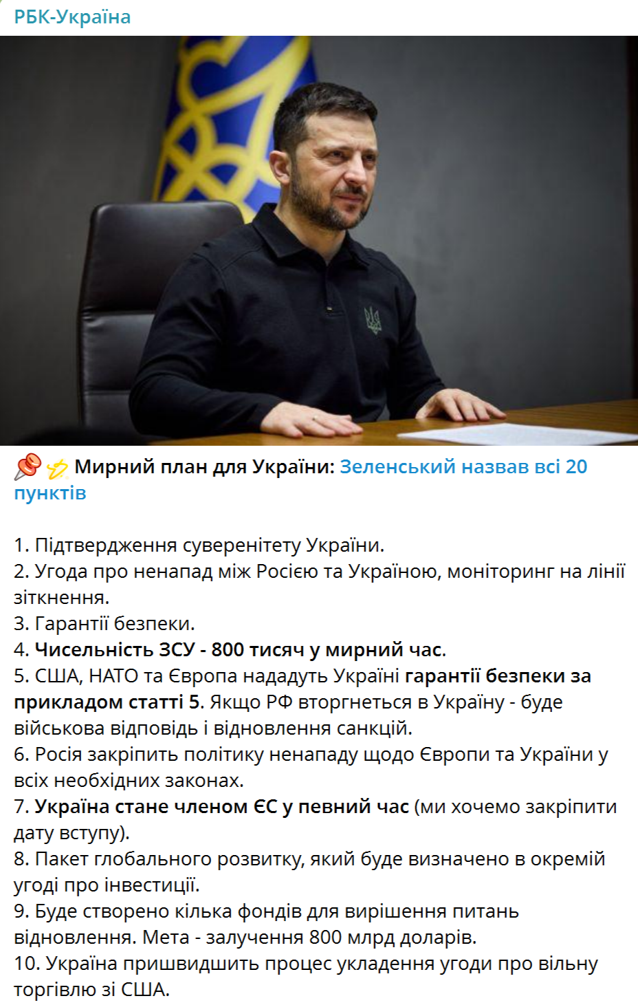 Укро-СМИ заявляют, что Зеленский назвал все 20 пунктов мирного плана: