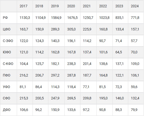 Согласно новому исследованию д.э.н В.А. Гневашевой [2], в России фиксируется снижение численности потенциальной рабочей силы (ПРС), если в 2017 году она составляла 1130,3 тыс. человек, то в 2024 году 771,8 тыс., что составляет сокращение на 32%. Наибольшее падение в Северо-Западном федеральном округе (53%), Приволжском (51%), Южном (42%) и Сибирском (39%), что вызвано в том числе внутренней миграцией.