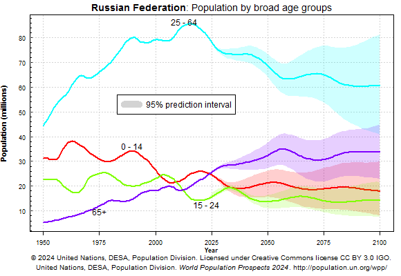 Особое внимание к российским трудовым ресурсам обусловлено тремя главными факторами: Специальная военная операция на Украине; блок НАТО+ активно милитаризируется и готовится к войне с Россией; демографическая катастрофа и вызванные негативные факторы, угрожающие существованию и развитию [Фактически эпоха вымирания началась при социалистическом СССР в 1964 году, когда СКР упал ниже 2,2 (уровень воспроизводства населения). Важно знать следующее: когда СКР снижается ниже уровня воспроизводства, то численность народонаселения растёт некоторое время, но депопуляция неизбежно начинается после преодоления демографической инерции.] Для анализа и прогноза необходимо понимать тенденции в области потенциальной рабочей силы [1].