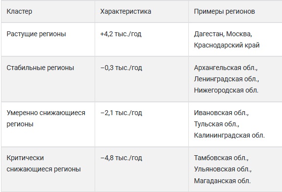 «С 2017 по 2024 гг. наблюдается устойчивое снижение численности потенциальной рабочей силы в среднем на 98,4 тыс. человек в год, несмотря на всплеск в 2019–2020 гг… Рост потенциальной рабочей силы концентрируется в регионах с высокой рождаемостью (Дагестан) и миграционной привлекательностью (Московская, Свердловская, Краснодарская области). Снижение наблюдается в стареющих, экономически депрессивных регионах ЦФО и СЗФО… Москва и Санкт-Петербург демонстрируют особую динамику – рост до 2020 года и последующее снижение», – отмечает Гневашева [2].
