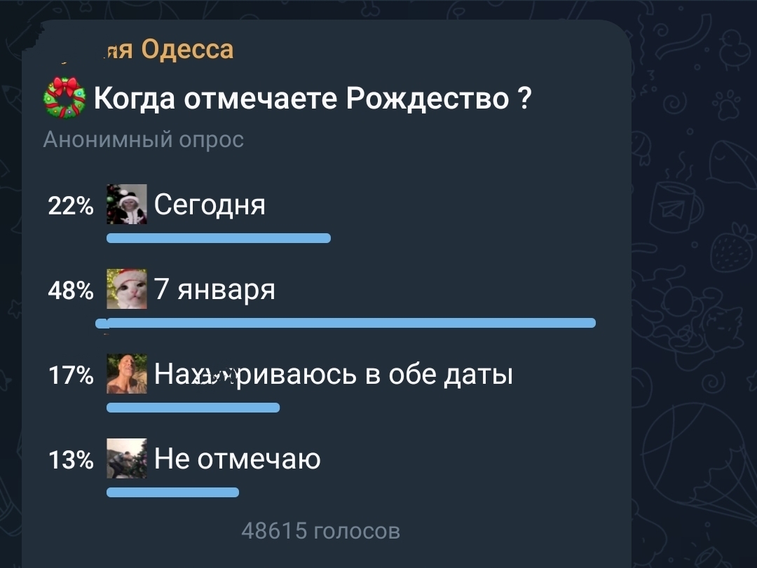 В голосовании приняли участие более 1,5 миллиона украинцев. Больше всего голосов (58,99%, 903265) было отдано за празднование Рождества 25 декабря.