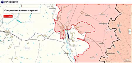 В тизере скрин, сделанный 21 ноября (карта РИА Новости), на котором видна корректировка ЛБС после доклада МО о взятии под контроль Купянска. Скажу сразу, что именно в тот день мы на АШ сразу же и обсудили сложность плацдарма и уже тогда прозвучали первые предостерегающие голоса. Но громче всех в те дни ругался Рыбарь, его буквально прорвало: нисколько не жалея ни своих подписчиков, ни случайных посетителей он метал молнии, называя происходящее очковтирательством (наверное его и следует считать застрельщиком ситуации). От себя добавлю, что многие и без него сложность положения заметили, но после его напористой риторики, понятное дело, что еще внимательнее стали впиваться глазами в означенный участок.