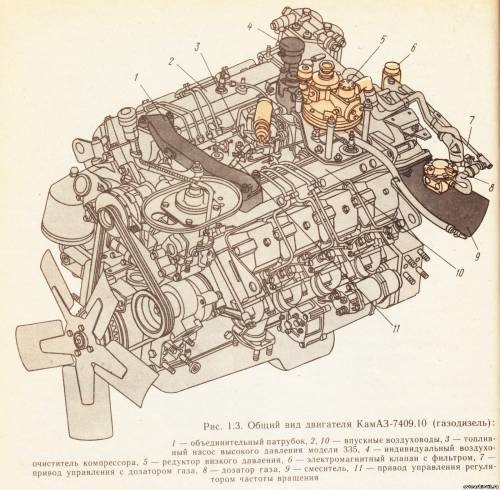 Общий вид двигателя КамАЗ-7409.10 (газодизель)