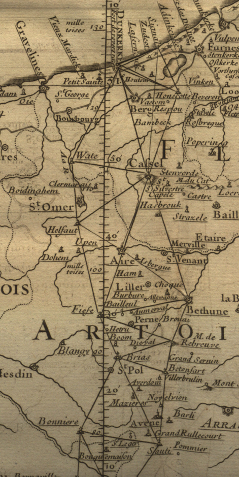 Следующим глобальным шагом в картографии можно считать внедрение новых стандартов точности. Французский астроном Жан Пикар установил телескоп со встроенным перекрестием нитей на угломерный квадрант. С его помощью в 1669 году Пикар и Джованни Доменико Кассини измерили дугу Парижского меридиана между Парижем и Амьеном (ошибка составила менее 0,44% по сравнению с современными данными) и начали масштабный проект по созданию новой топографической карты Франции.