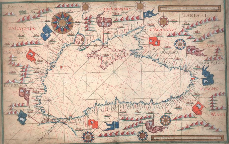 Теперь о точности так называемых «компасных карт», портуланов, которые широко использовались моряками позднего средневековья и Возрождения до появления морских карт в проекции Меркатора. Для своего времени портуланы Средиземного и Черного морей действительно выглядят как современные спутниковые снимки.