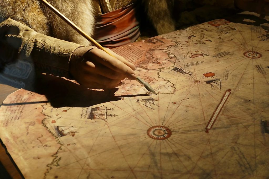 Стоит уточнить, что портуланы — это уникальный тип морских карт. Их создание не имело ничего общего с картографией, основанной на широте и долготе. Главная визуальная особенность портулана — не координатная сетка (её там не было), а сетка румбов. Создателем карты выбиралась центральная точка и несколько вспомогательных по кругу. Из этих точек проводились линии, соответствующие 16 или 32 направлениям компаса.
