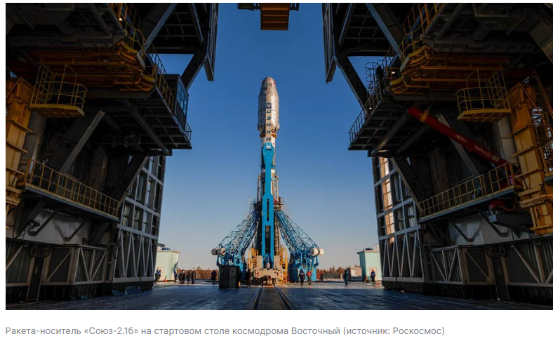 "Госкомиссия разрешила заправку топливом ракеты "Союз-2.1б" со спутниками "Аист-2T" и иными космическими аппаратами. Её пуск с Восточного в 16:18 по московскому времени", - говорится в сообщении в Telegram-канале госкорпорации.