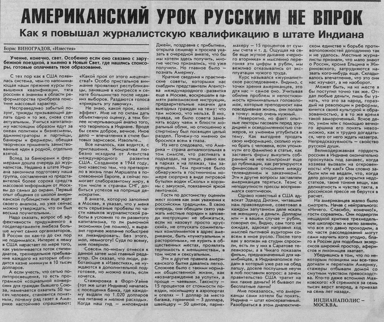 ▪️Вслед за банкирами и фермерами дошла очередь до журналистов. Недавно в штате Индиана закончила подготовку наша группа, составленная из представителей более сорока средств массовой информации от Москвы до самых до окраин.