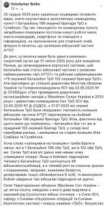 Кстати, эти печати должны были быть сданы в режимно-секретный орган еще 31 июля 2025 года для уничтожения. Ранее, до введения корпусной системы, этот батальон имел статус воинской части с условным наименованием «в/ч А7127» и действительным наименованием «75 отдельный батальон ТрО 102 отдельной бригады ТрО». Но в соответствии с совместной директивой министра обороны Украины и главнокомандующего ВСУ от 22.05.2025 № Д-321/65/дск «о проведении дополнительных организационных мероприятий в Вооруженных Силах Украины в 2025 году» и директивы командующего Сил ТрО ВСУ от 22.05.2025 № Д-22/ДСК, с 31.07.2025 все отдельные батальоны ТрО были ликвидированы. Вместо этого бывшая военная часть А7127 была преобразована в линейный батальон 106 отдельной бригады ТрО. Впрочем, фактически от этого мало что поменялось - батальон был тут же придан 102 отдельной бригаде ТрО, в составе которой находился ранее, и остался на старых позициях возле Софиевки и Гуляйполя.