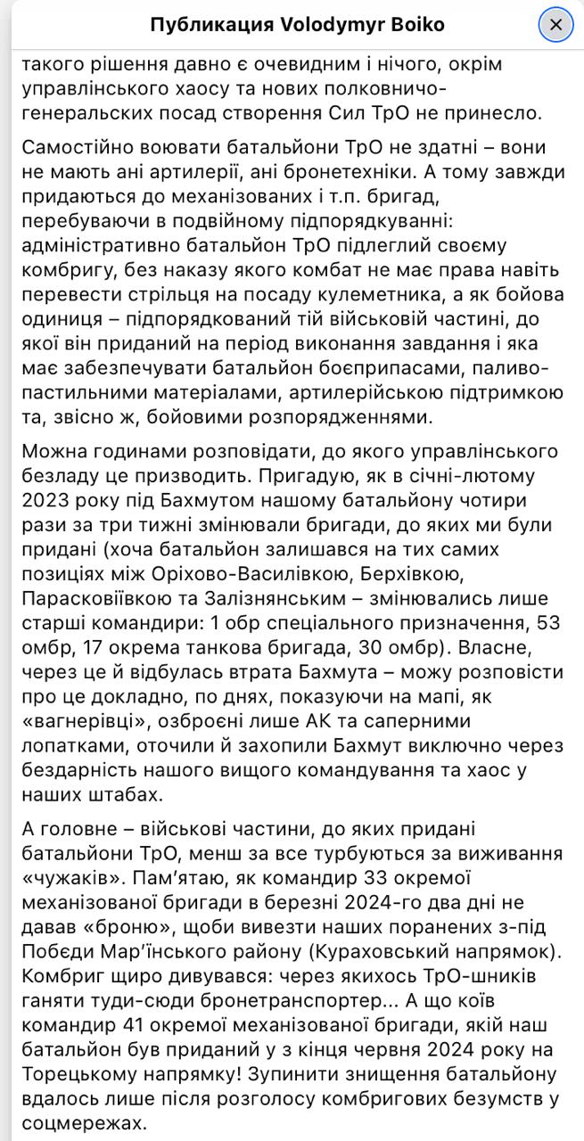 Это перевод поста укро-журналиста Владимира Бойко о ситуации с потерей Гуляйполя и силами Территориальной Обороны вообще.
