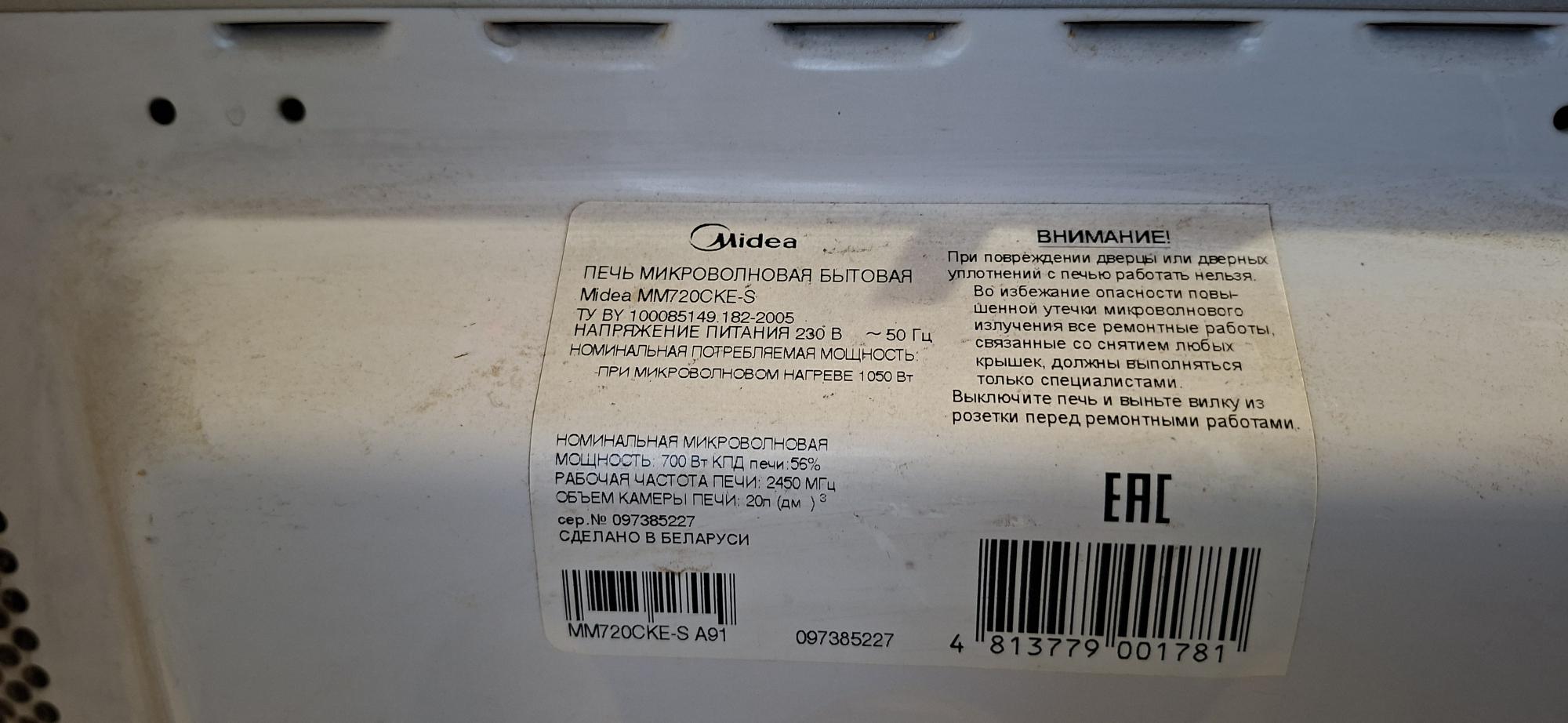 У меня тоже midea микроволновка зроблена у беларуси в подвале есть, рабочая. Но сейчас встаиваемая без поворотного стола но не мидея.