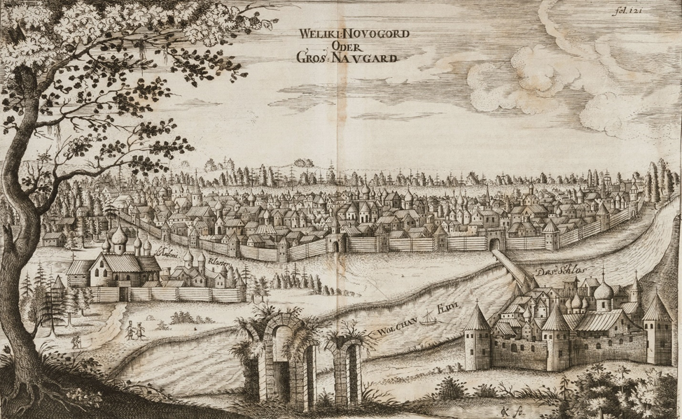 Почему на рисунке Олеария полностью отсутствуют следы только что заново отстроенного Земляного города Новгорода остается неясным.