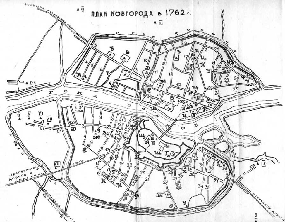 24. План Новгорода 1762 года // Новгородский исторический сборник, Вып. 9, 1959,