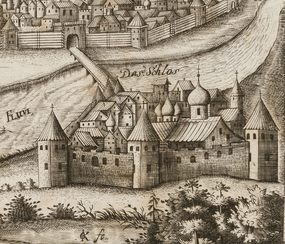 Непонятно почему в случае с Новгородом Олеарий расположил Кремль не в центре, а в углу своего рисунка.