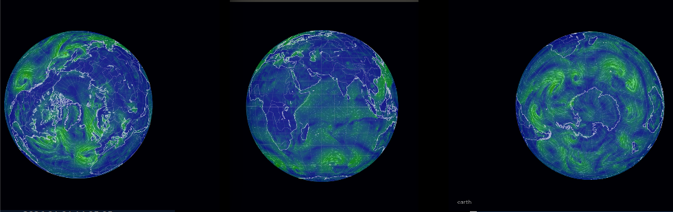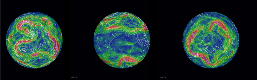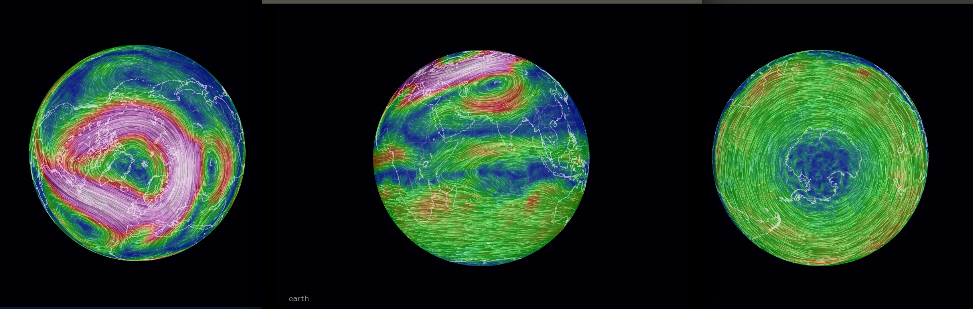 А над Южным полушарием - почти штиль. Равномерно размазанные по атмосфере потоки ветра скоростью "всего-то" в 60-70 км/час.
