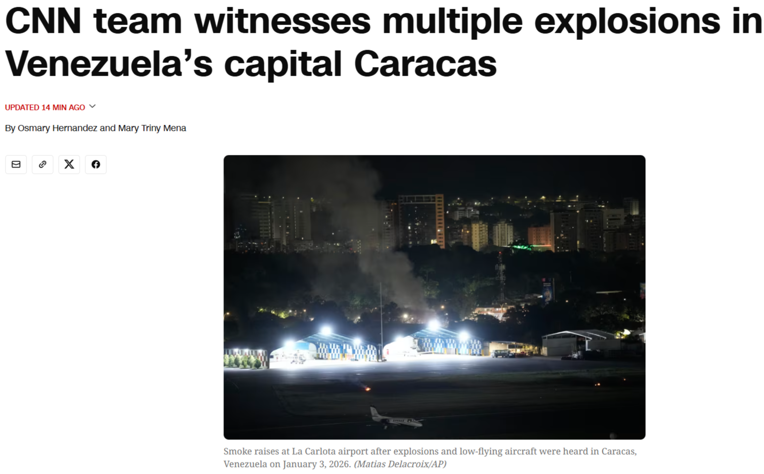 CNN: Команда CNN стала свидетелем нескольких взрывов, произошедших рано утром в субботу в Каракасе, и сообщила, что в некоторых районах города нет электричества.