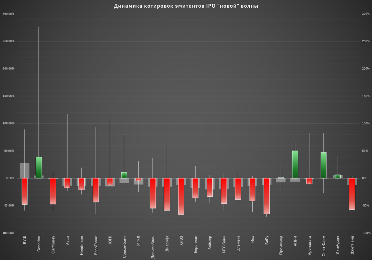 «Новая» волна IPO – это компании, вышедшие и выходящие на Мосбиржу с первичным размещением после начала 2022 года. После ухода с рынка западных инвесторов.