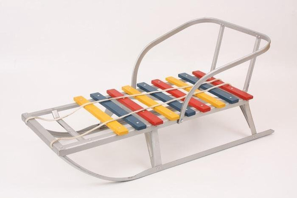У нас вот такие были со стальными полозьями, ржавели при простое недвусмысленно. Задняя часть воткнулась товарищу между глазом и ухом. Как раз в середине паровозика. Хотя и передние углы нормально так влетали в спины углом. А уж как они в голени втыкаются! Многие нащупают шишки по передней поверхности большеберцовой кости, да-с. Надо бы Думе запретить паровозики и детей.