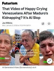 Однако, если спросить американских сторонников Трампа, венесуэльцы на самом деле в восторге от вторжения. Их доказательство: старый добрый искусственный интеллект.