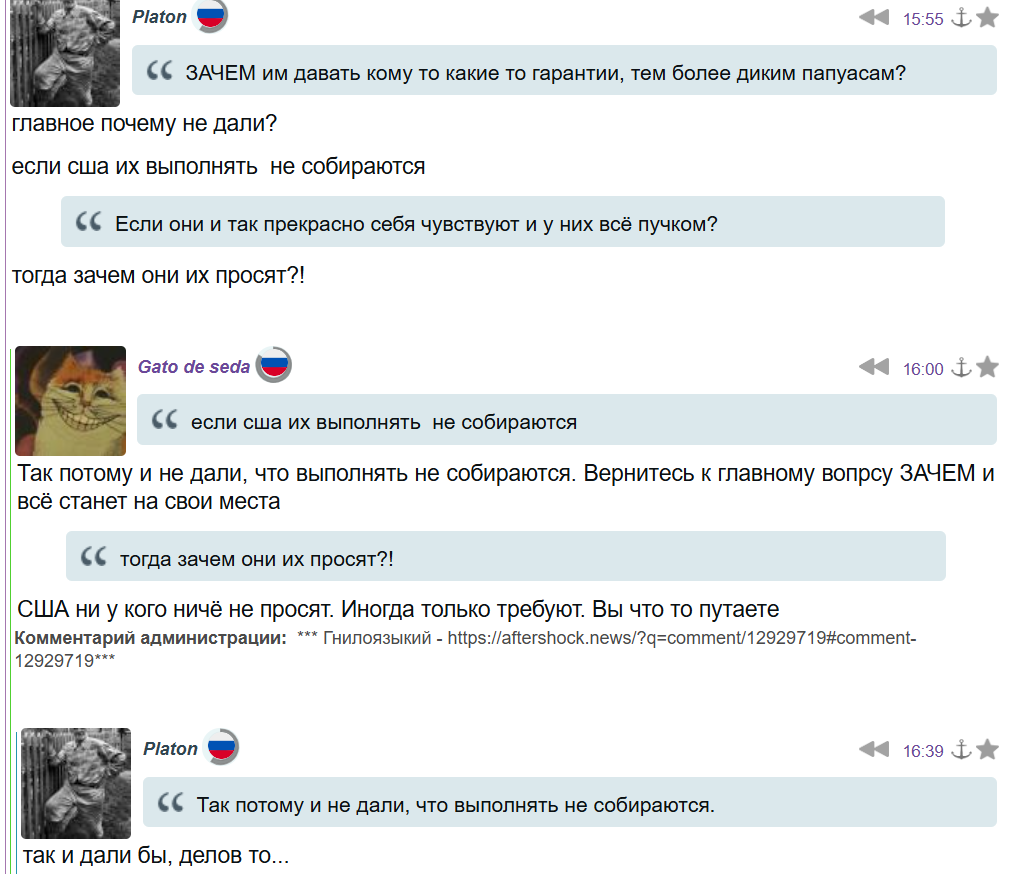 Ой блин действительно мы недостаточно переживаем, хорошо что хоть вы бдите за десятерых, можно выдыхать Гато на страже интересов РФ.