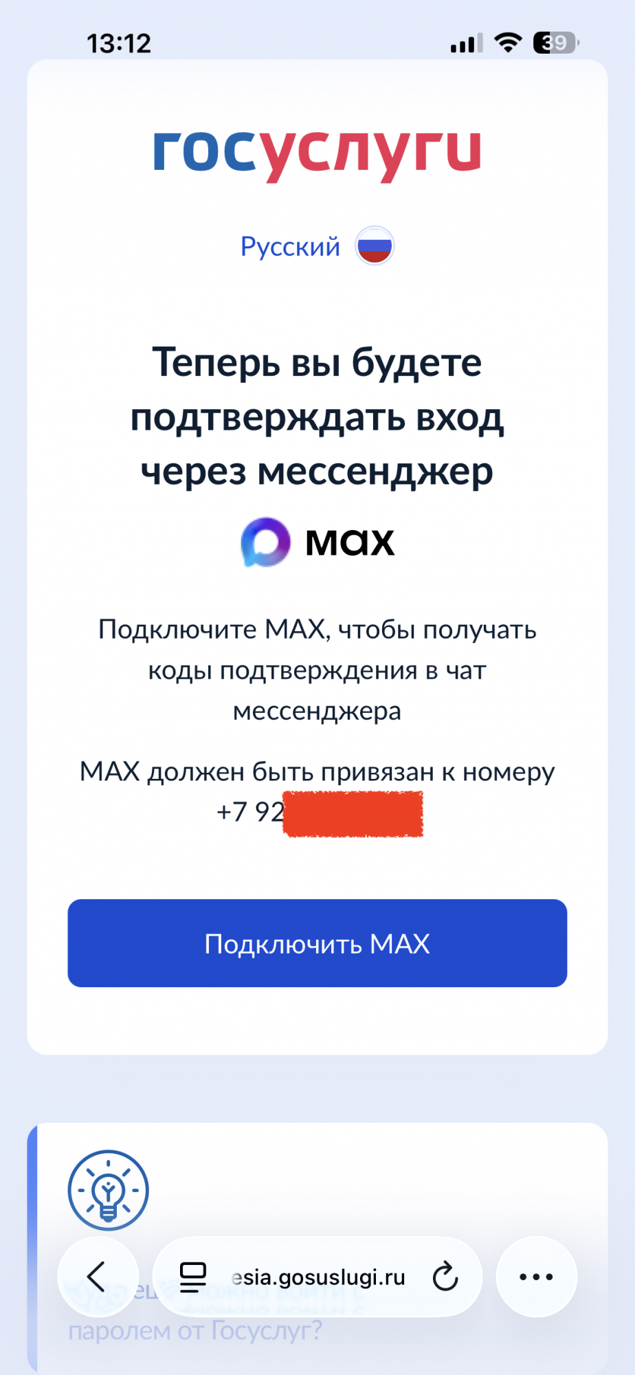 3. Пытаюсь войти на Госуслуги – нет способа обойти Мах, нет кнопки "Пропустить". Захожу через комп – там кнопка "пропустить" есть. Хочу зайти со смартфона. Звоню в колл-центр госуслуги, от робота требую оператора. Попадаю на оператора колл-центра, объясняю ему, что не могу без Маха зайти в госуслуги, а Мах ставить не хочу. Оператор переключает меня на "специалиста по моему вопросу", время ожидания – 30 мин. Понятно.