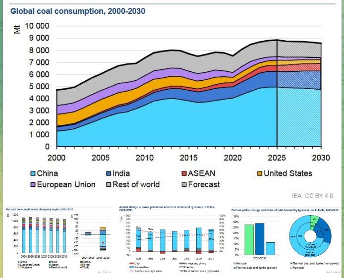 В 2025 году общее потребление угля в Китае стабилизируется на уровне около 4 953 млн тонн, или примерно 56% мирового спроса.
