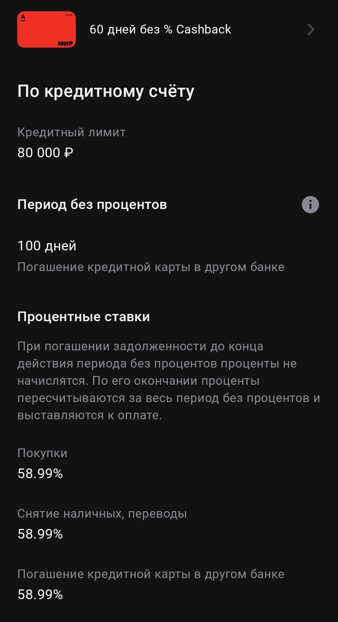 Слабаки, у меня на тиньке на покупки 35.3 и на снятие наличных - 59.9% годовых🤣