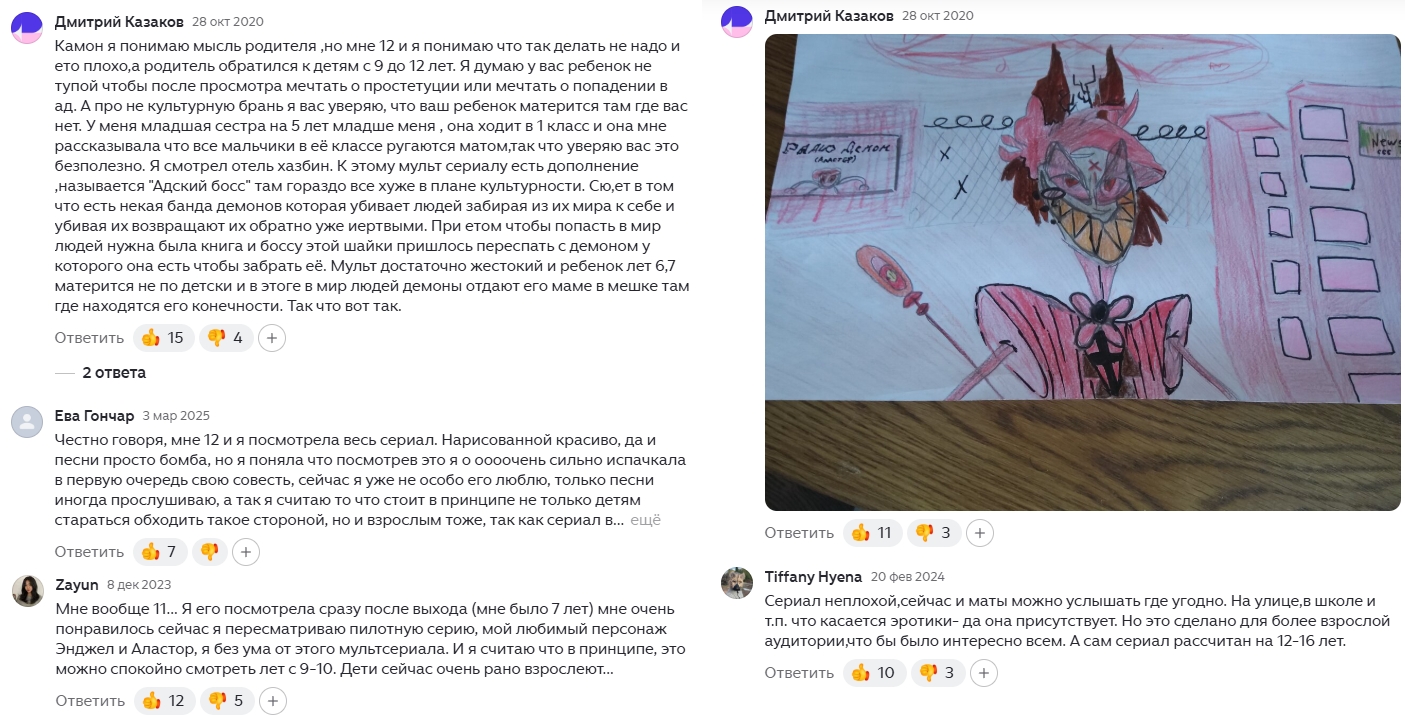 Иностранная система родительского контроля BrightCanary на вопрос о допустимости просмотра мультфильма "Отель Хазбин" детьми, описывает этот мультсериал следующим образом: