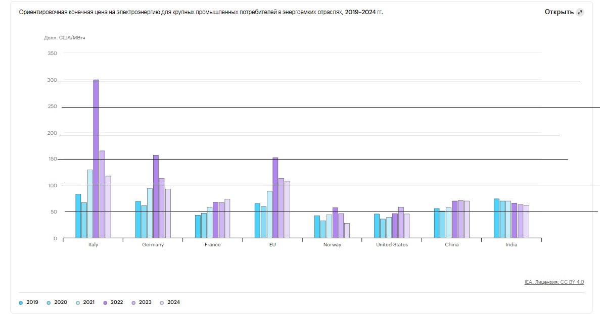 А в таблице МЭА 5 центов за 1 киловатт-час в 2024 году. Но это наверное тоже для алюминиевых заводов в США, а для остальных 15 центов.