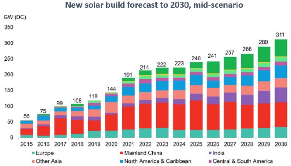 Прогноз был сделан в 2021 году. Смотрите на картинке № 1, где спрогнозирован ввод СЭС 240 ГВт в 2025 году.