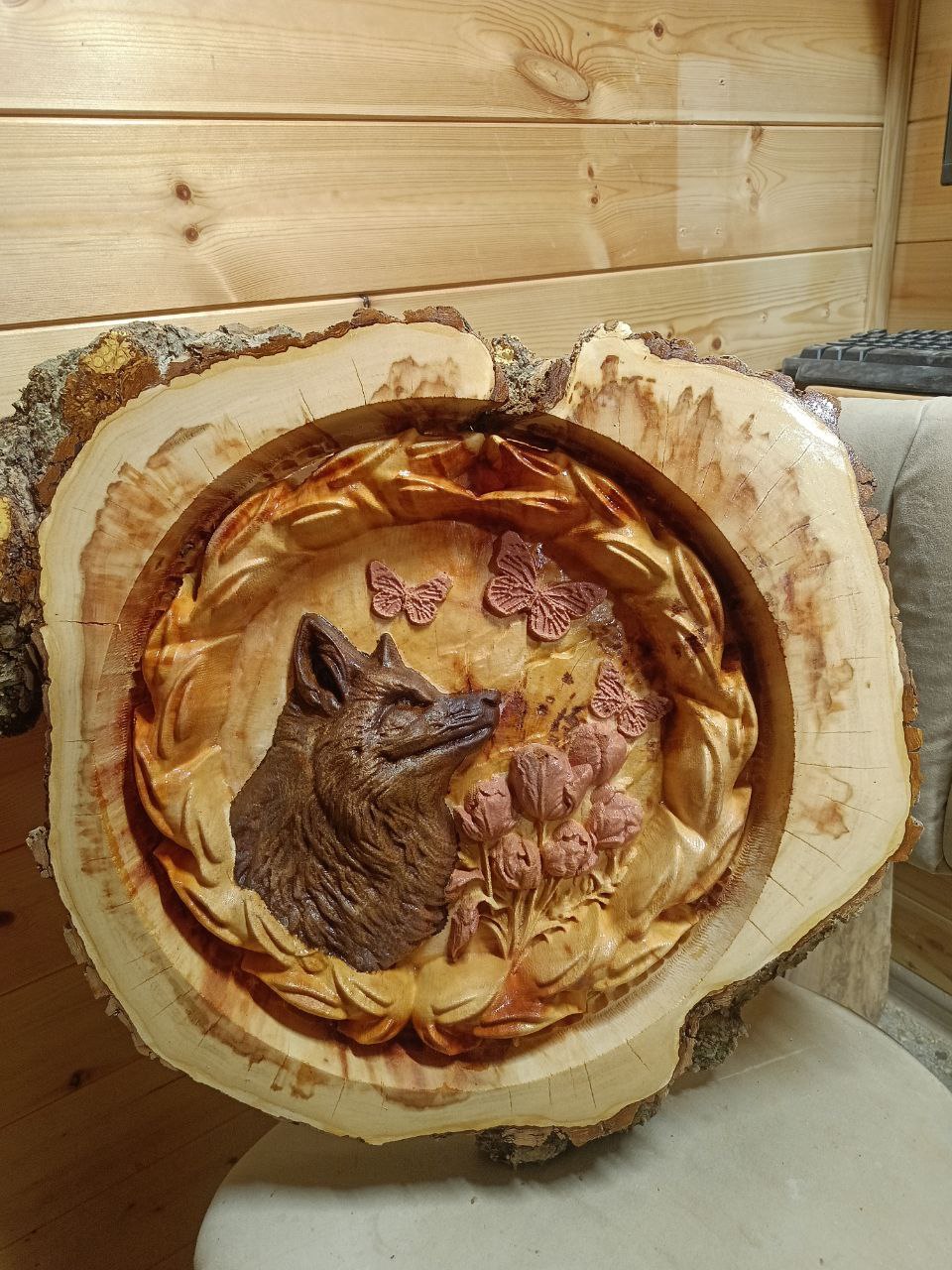 Единственное, что резануло глаз - розовые тюльпаны и бабочки. Как-то при покраске начанают несколько пластмассово смотреться - текстура дерева исчезает.
