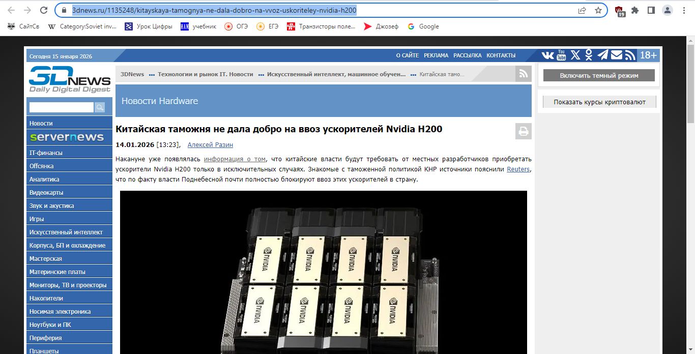 Власти США одобрили эти поставки, чтобы позволить Nvidia конкурировать в Китае с местными производителями чипов. В Вашингтоне считают, что экспорт чипов H200 не позволит Пекину вырваться вперед в гонке за ИИ, поскольку этот продукт является далеко не самым передовым решением Nvidia, пишет The Wall Street Journal