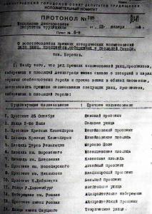 В перечне, опубликованном в городских газетах, значились 20 городских объектов с указанием старого и нового названия.