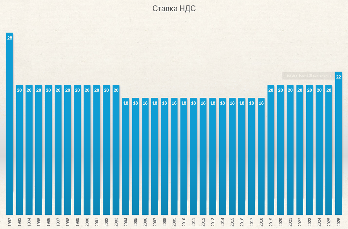 В целях повышения образованности докладываю, НДС на территории нашей с вами Федерации был разный. В 1992 году ставка по НДС составляла 28%. В 1993 – 20%. С 1 января 2004 её понизили до 18%.