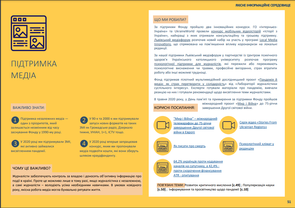 ❹Параллельно Фонд поддерживает проекты, создававшие качественный англоязычный контент об Украине для западных аудиторий
