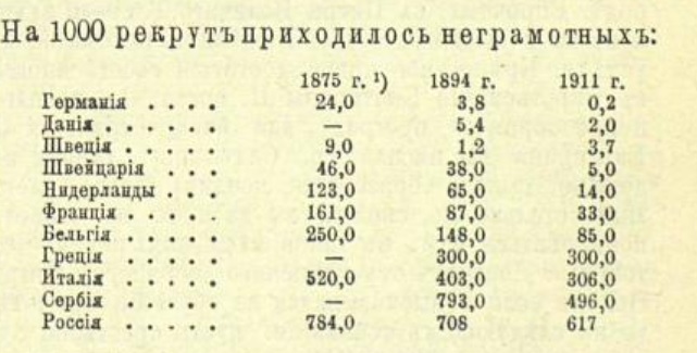 Разве ж непонятно, что эта "гнида (которая составила эту таблицу) сильно сгущала краски, чтобы подгадить ненавистному царскому режиму..." ("...просто и незатейливо переписывая Историю . Тысячелетнюю Историю нашего народа и Государства")? Что "Империя Российская имела гигантские размеры", и что поэтому "настоящая неграмотность среди рекрутов в принципе не могла накрыть всю 1\6 часть суши одномоментно"?