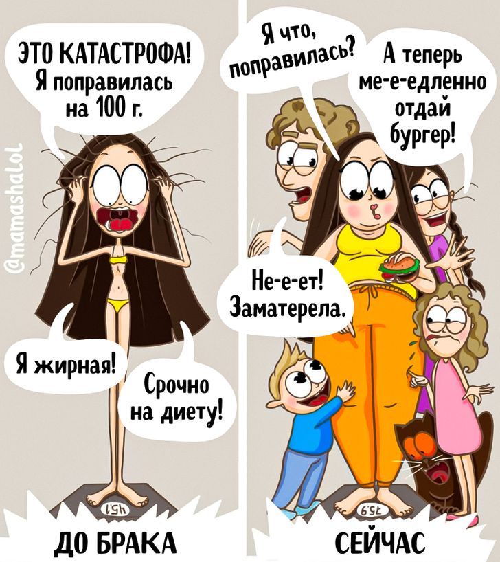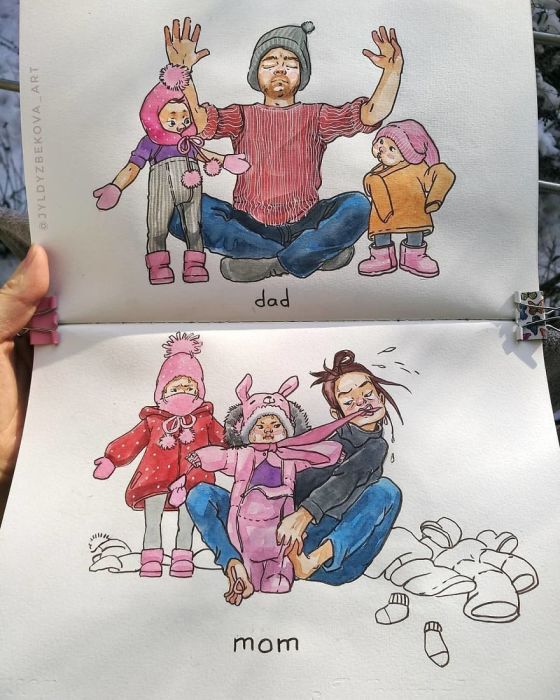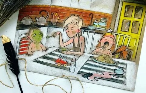 Мамские комиксы - особый жанр. Своим появлением он обязан мамочкам 1-2-3 детей, которые пытались сохранить в своих зарисовках самые характерные или самые волнующие моменты домашней жизни. В какой-то момент эти комиксы пережили расцвет, но сейчас, похоже, все ходовые сюжеты уже обыграны, и художницы в ожидании новых идей стали уделять больше внимания текстовой части. Не могу назвать себя поклонницей этого жанра или конкретных авторов, но некоторые рисунки кажутся мне особо удачными. Поскольку они почти равномерно распределяются по разным блогам, то сведений об отдельных художницах не даю - просто предлагаю несколько сцен, которые считаю в принципе типичными для семейного быта.