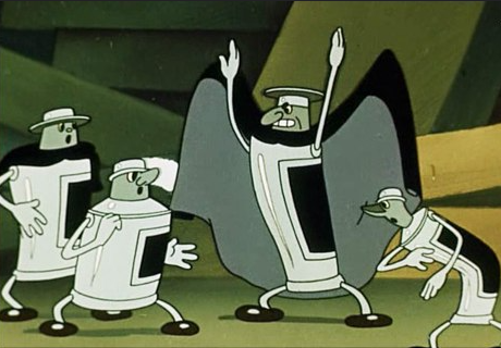 Напоминает мне мультфильм 1959г "Похитители красок" . Всё раскрасить в чёрный цвет.