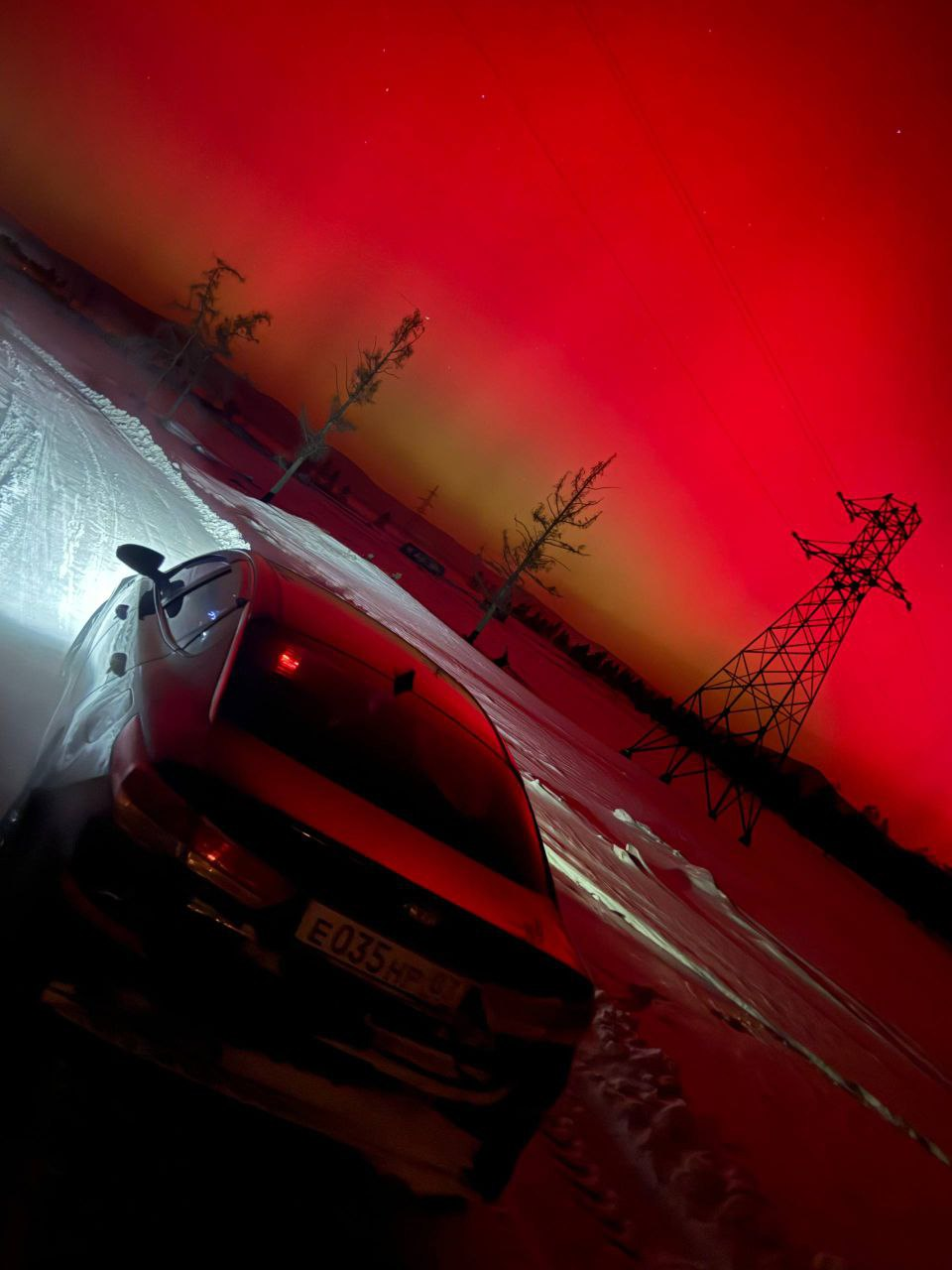 У нас ночью даже в Донецке было. Никогда бы не подумал. Я не видел, но фото в сети есть. Сияние красного цвета.
